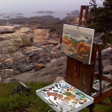 Working outside, the study of the light and color in the moment is a demanding and exciting subject. With oil paint there can be more range of effects than watercolor.