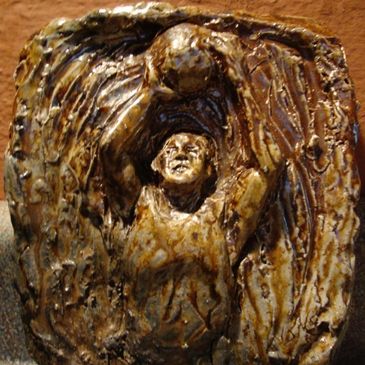 I like working in clay relief as a way to explore depth. This requires carving into and adding clay (usually stoneware) firing in a kiln, glazing and firing again.