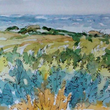 Watercolor is a favorite choice for catching the light and energy of form while traveling or just looking around at home and in the garden. I often use pen to add a drawing element.