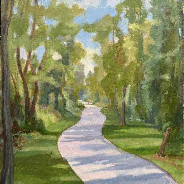 In this plein air painting I worked on the site of the Oklawaha Greenway for several mornings in October 2025. The objective was to keep an overall simplicity to the light and form with a focus on the path.